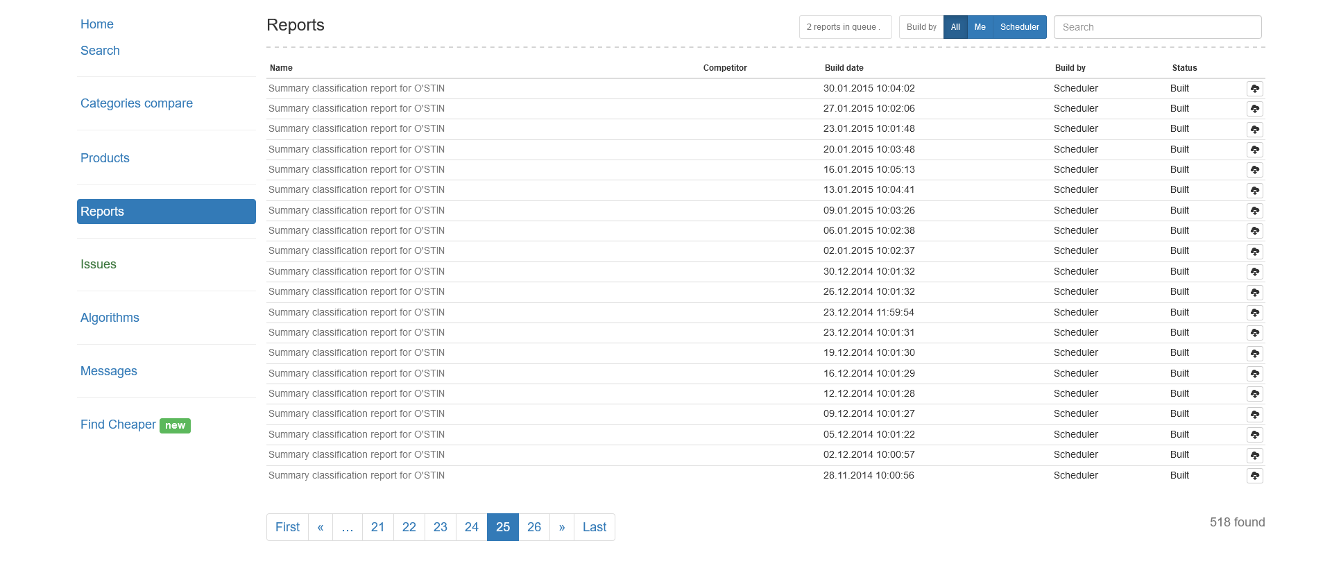 В личном кабинете доступно формирование и выгрузка данных, представленных на диаграммах, в CSV-, XLSX-файлы. Сервис генерирует периодические выгрузки по завершении веб-парсинга и при возникновении различных событий. Периодические выгрузки отправляются на электронную почту сотрудников клиента. Сервис хранит все сформированные отчеты и периодические выгрузки, которые доступны в разделе «Отчеты».