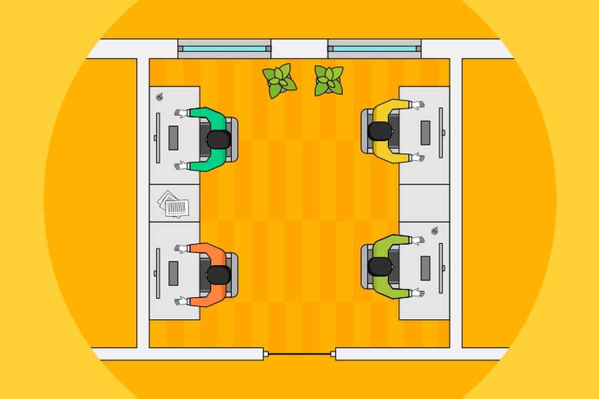 Мы считаем, что в одном помещении должны находиться максимум четыре человека. Программисты — в основном, интроверты. Среди них немногим нужно постоянное общение, обмен эмоциями с другими людьми.