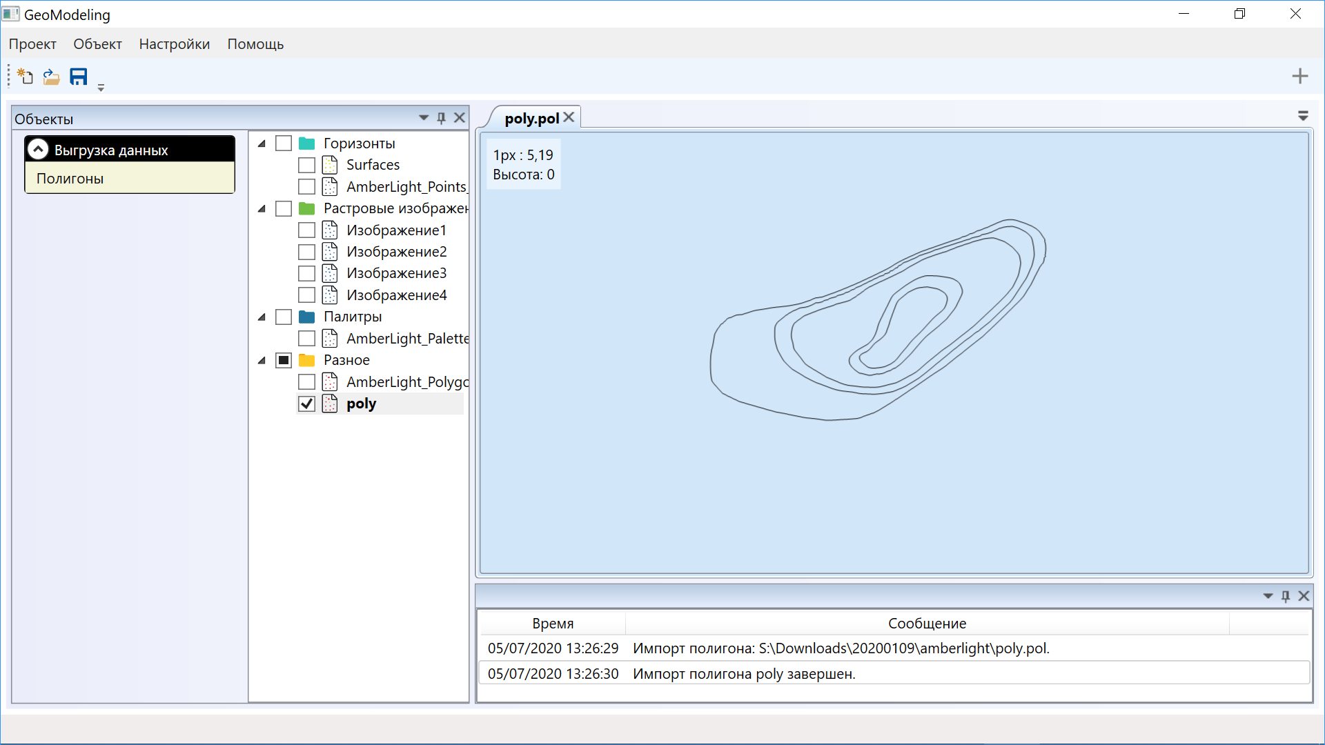2D-визуализация позволяет просматривать растровые изображения, точки, полигоны и поверхности в горизонтальной плоскости. Логика компонента реализована «с нуля» средствами .NET WPF. При увеличении масштаба или передвижении объектов, рисуется только видимая часть объектов.